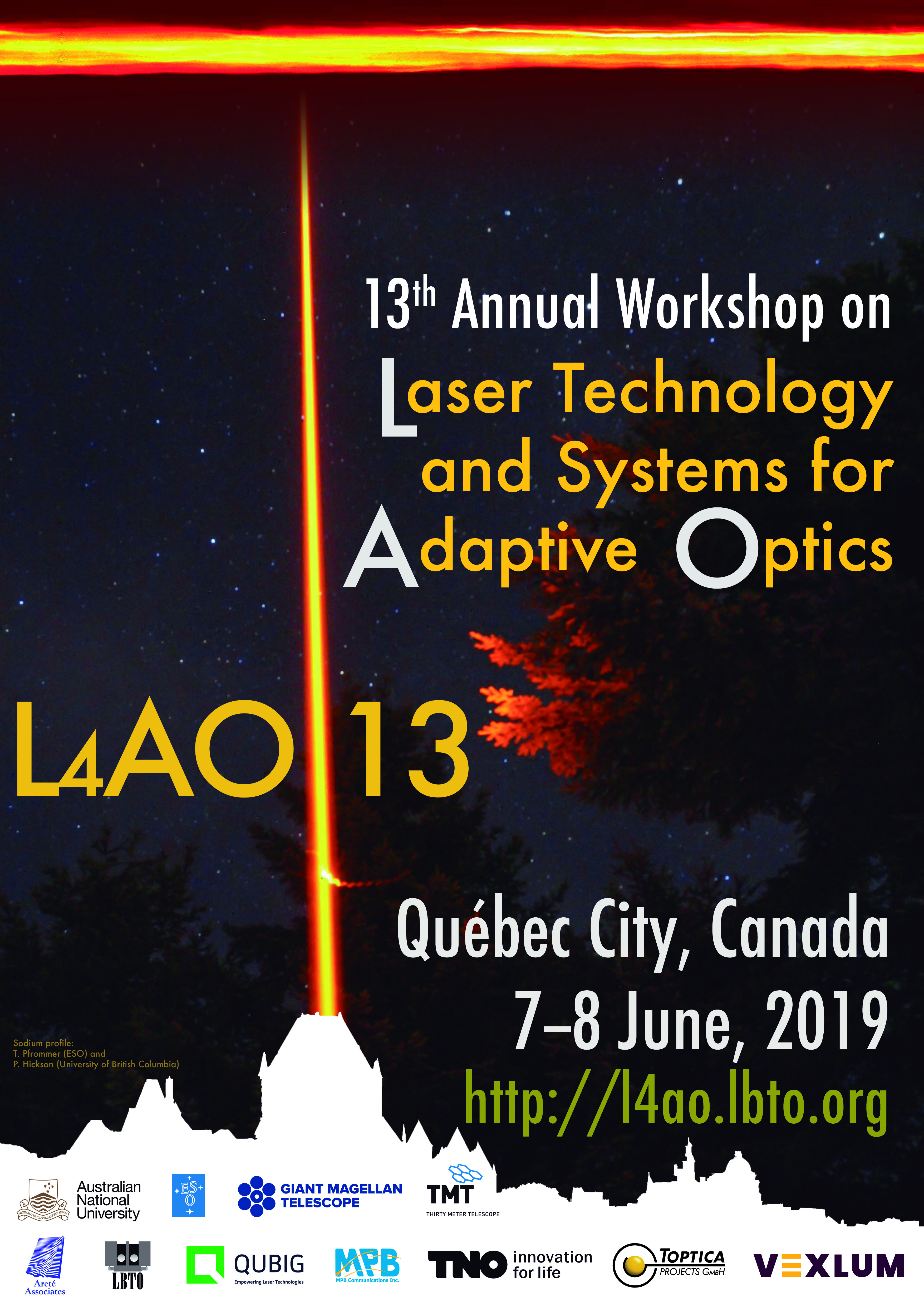 Thanks to the generosity of our sponsors, the L4AO-13 Workshop Organization will be able to provide some limited financial support to partially cover student and early-career travel expenses, as well as to offset extraordinary child care-related costs that parents/carers will be facing (in Quebec City, at home, or otherwise) in order to participate in the workshop.